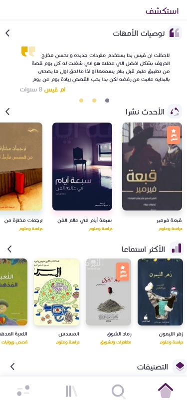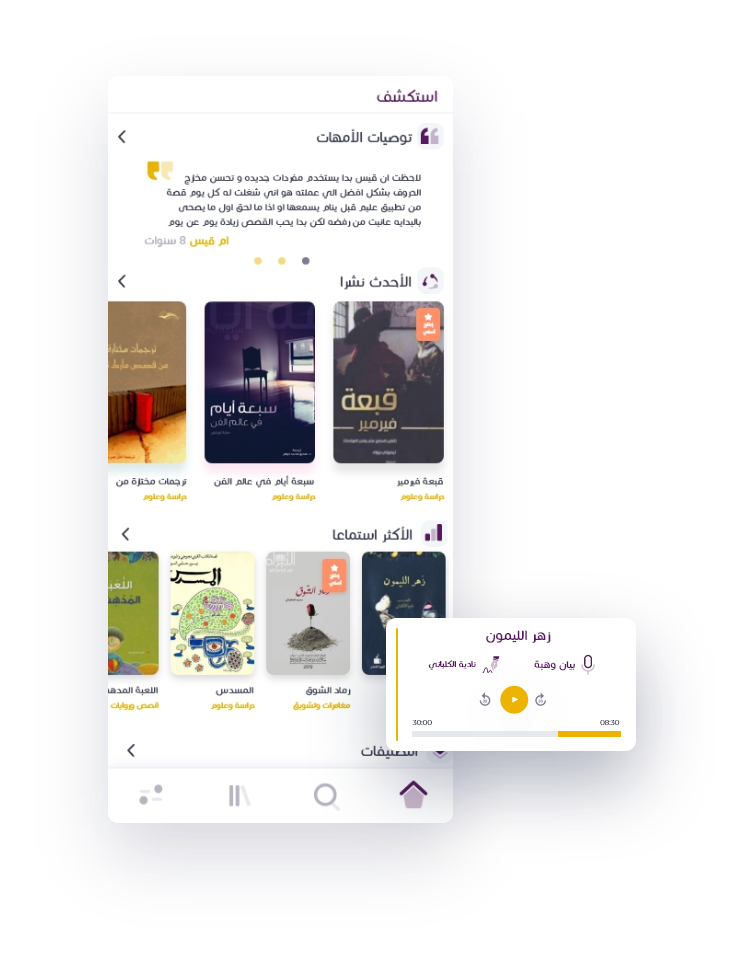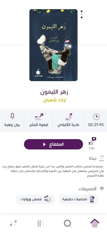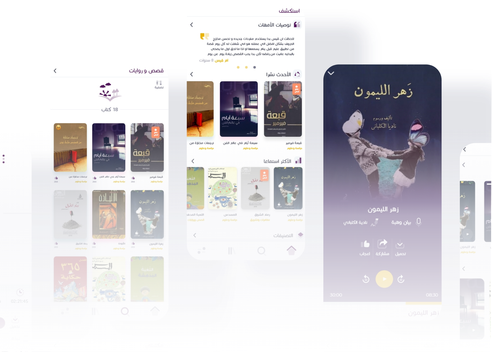 مع مئات الكتب الصوتية الشيقة و المفيدة سيُحبب عليم الأطفال بالكتب ويشجعهم على القراءة الأداء القصصي والجودة العالية لكتب كبرى دور النشر العربية من رواة محترفين يجعل مطالعة الكتب أكثر تشويقاً
